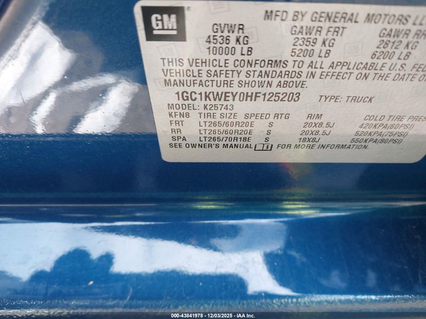 2017 CHEVROLET SILVERADO 2500 2017 року Дизель, 6.6, Повний привід, vin - 1GC1KWEY0HF125203 з США