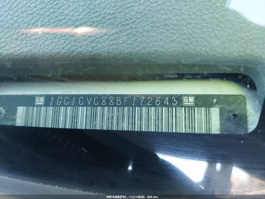 Колір БілийЦиліндри 8VIN 1GC1CVC88BF172643Стан СтаціонарноУшкодження Низ