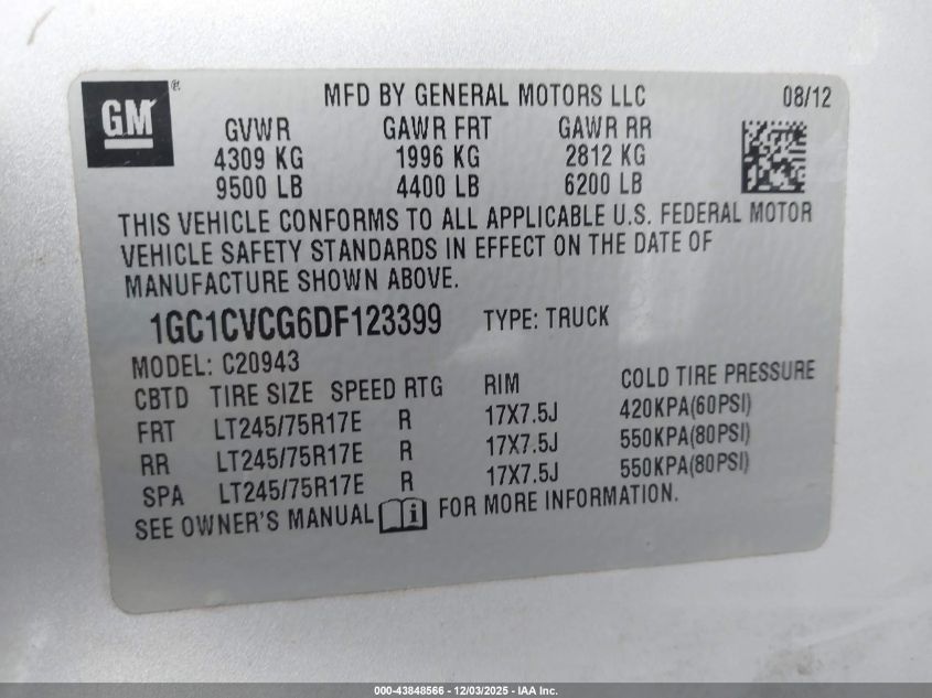 Колір СрібнийЦиліндри 8VIN 1GC1CVCG6DF123399Стан Заводиться та їде (перевірено)Ушкодження ЗадняДата аукціону 2025-12-09