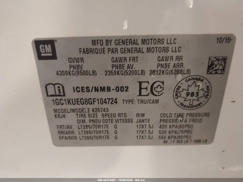 Колір БілийЦиліндри 8Привід Повний привідVIN 1GC1KUEG8GF104724Стан СтаціонарноУшкодження ВодаДата аукціону 2025-12-16