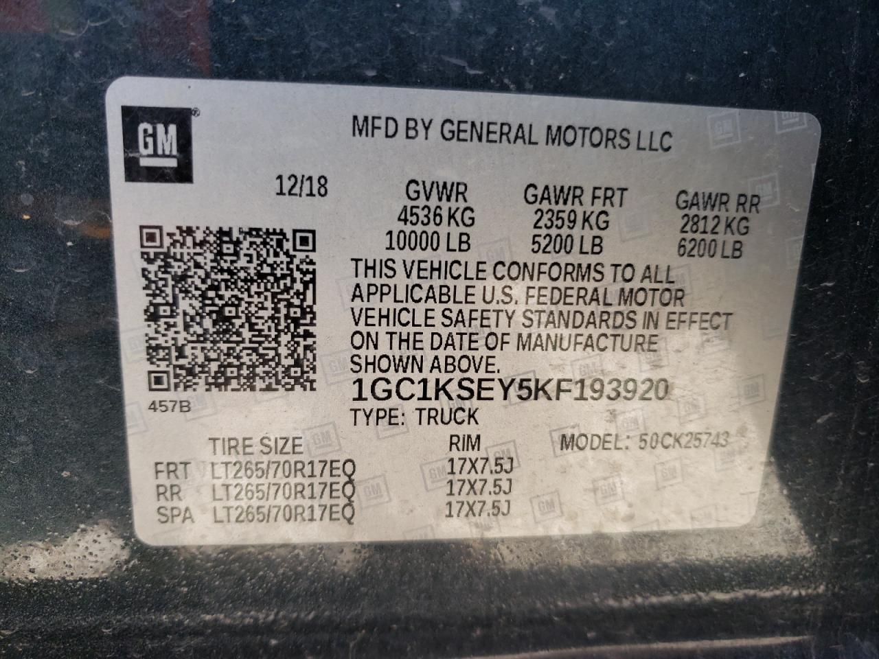 Колір СірийЦиліндри 8Привід 4x4 з заднім приводомVIN 1GC1KSEY5KF193920Стан Заводиться та їде (перевірено)Ушкодження Передня або задня AutoRIA
