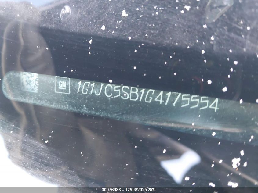 Колір СинійЦиліндри 4Привід Передній привідVIN 1G1JC5SB1G4175554Стан СтаціонарноУшкодження ПередняДата аукціону 2025-12-09 AutoRIA
