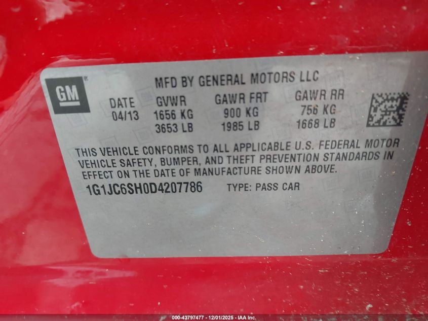 Колір ЧервонийЦиліндри 4Привід Передній привідVIN 1G1JC6SH0D4207786Стан Заводиться та їде (перевірено)Ушкодження Передня або задня AutoRIA