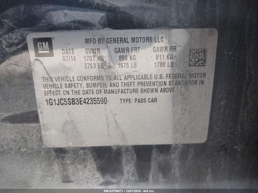 Колір СірийЦиліндри 4Привід Передній привідVIN 1G1JC5SB3E4235590Стан Заводиться та їде (перевірено)Ушкодження Передня або задня AutoRIA