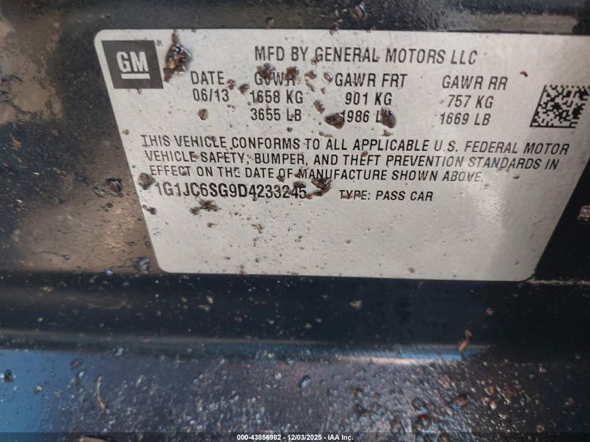 2013 CHEVROLET SONIC 2013 року Бензин, 1.8, Передній привід, vin - 1G1JC6SG9D4233245 з США
