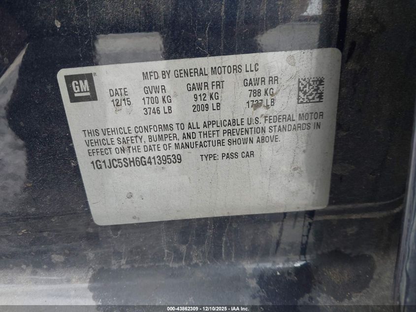 2016 CHEVROLET SONIC LT