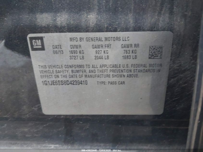 2013 CHEVROLET SONIC 2013 року Бензин, 1.4, Передній привід, vin - 1G1JE6SB8D4239410 з США