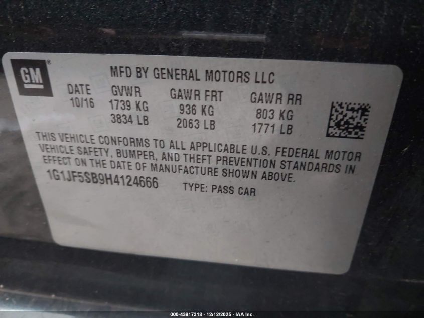 Колір СірийЦиліндри 4Привід Передній привідVIN 1G1JF5SB9H4124666Стан СтаціонарноУшкодження Передня або задня AutoRIA
