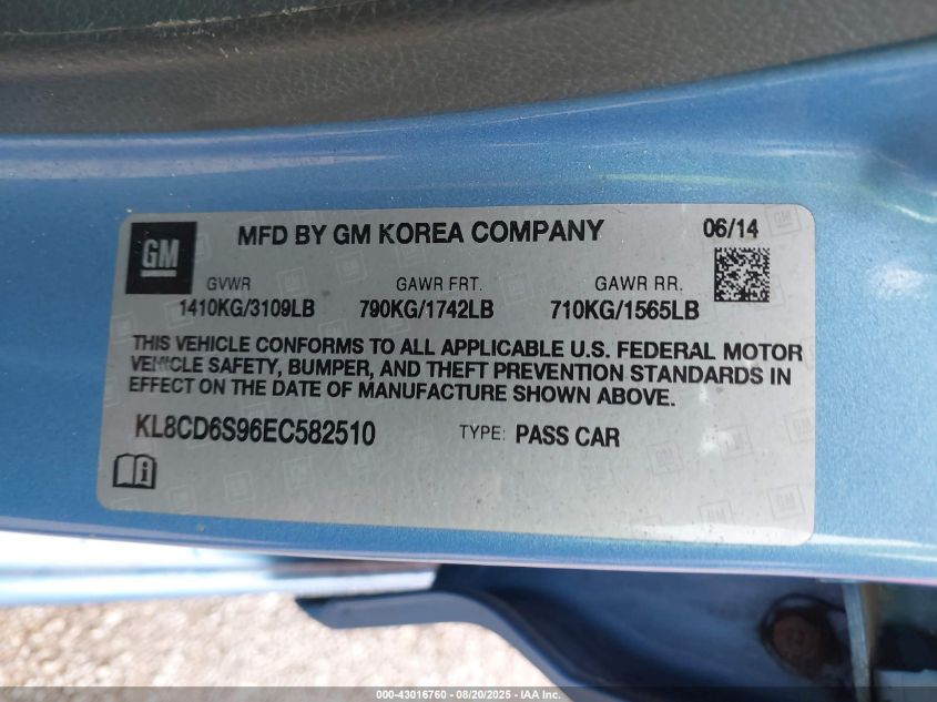 2014 CHEVROLET SPARK 2014 року Бензин, 1.2, Передній привід, vin - KL8CD6S96EC582510 з США