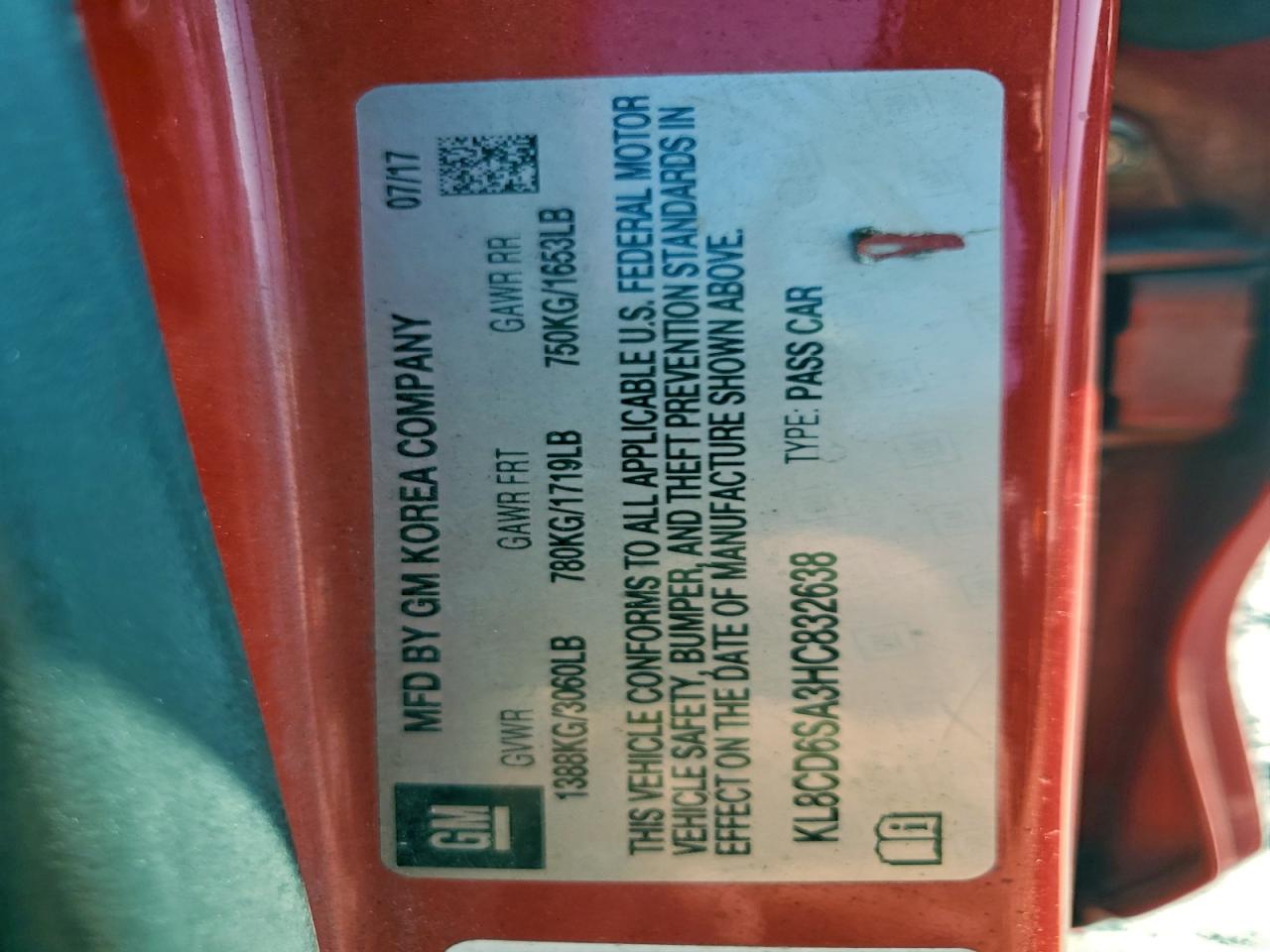2017 CHEVROLET SPARK 2017 року Бензин, 1.4, , vin - KL8CD6SA3HC832638 з США