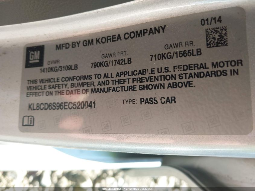 2014 CHEVROLET SPARK 2014 року Бензин, 1.2, Передній привід, vin - KL8CD6S96EC520041 з США