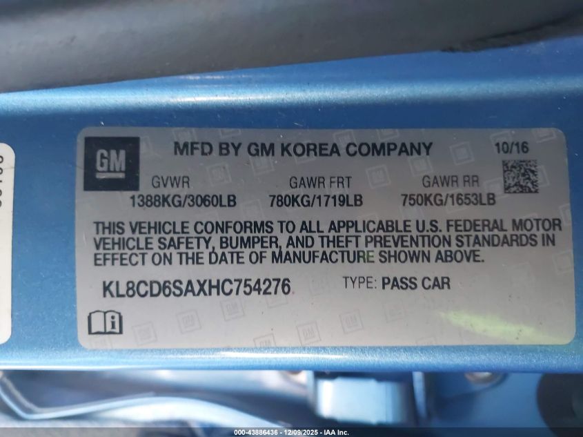 2017 CHEVROLET SPARK 2017 року Бензин, 1.4, Передній привід, vin - KL8CD6SAXHC754276 з США