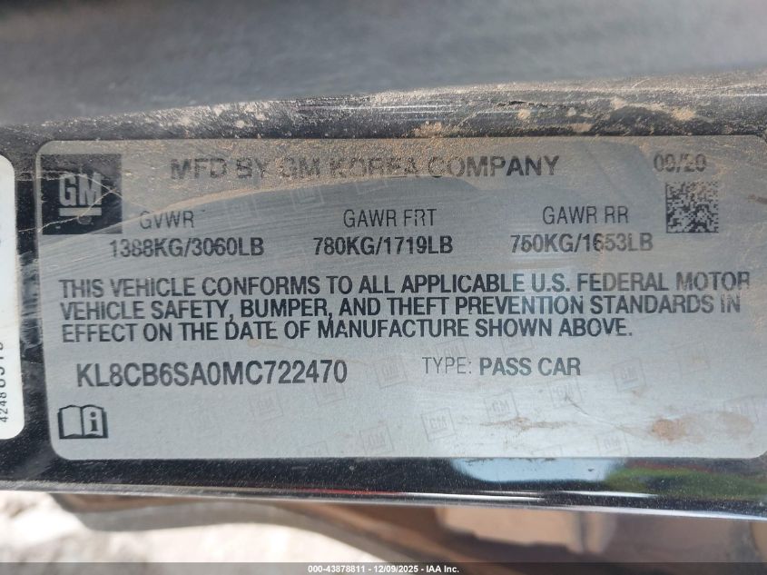 2021 CHEVROLET SPARK 2021 року Бензин, 1.4, Передній привід, vin - KL8CB6SA0MC722470 з США