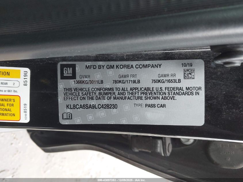 2020 CHEVROLET SPARK 2020 року Бензин, 1.4, Передній привід, vin - KL8CA6SA9LC428230 з США