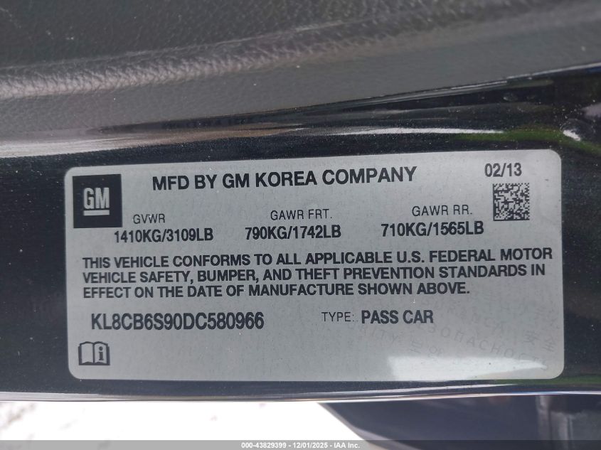 2013 CHEVROLET SPARK 2013 року Бензин, 1.2, Передній привід, vin - KL8CB6S90DC580966 з США