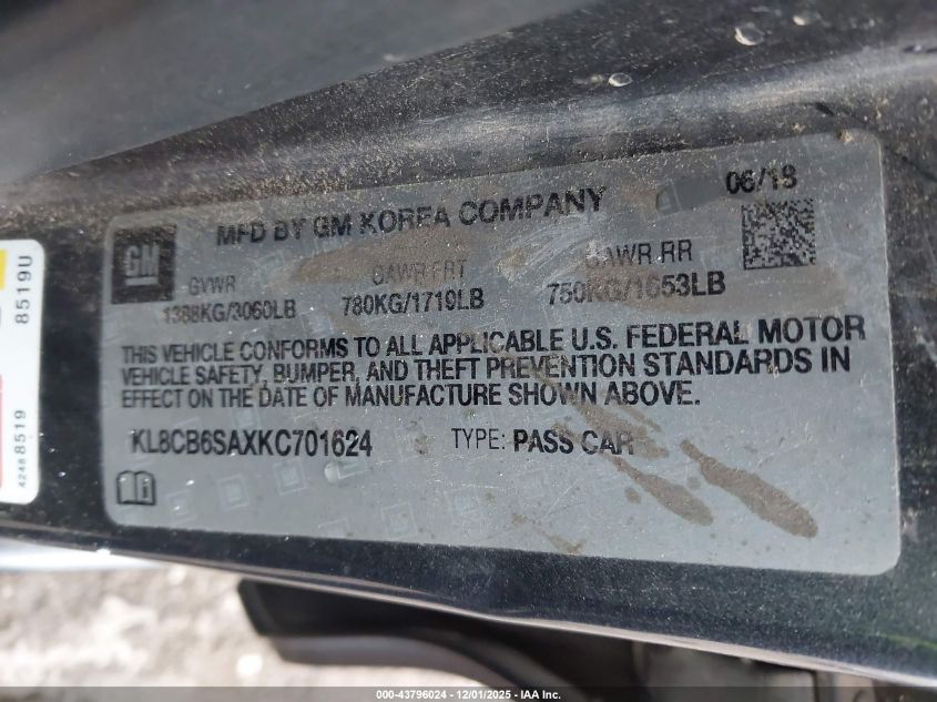 2019 CHEVROLET SPARK 2019 року Бензин, 1.4, Передній привід, vin - KL8CB6SAXKC701624 з США