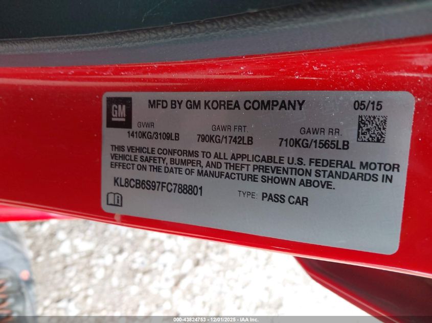 2015 CHEVROLET SPARK 2015 року Бензин, 1.2, Передній привід, vin - KL8CB6S97FC788801 з США