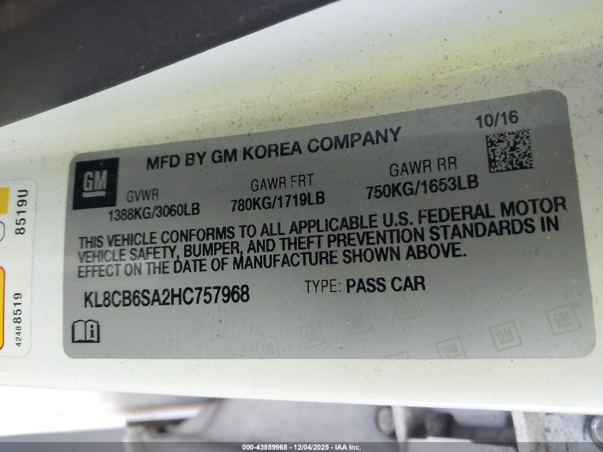 2017 CHEVROLET SPARK 2017 року Бензин, 1.4, Передній привід, vin - KL8CB6SA2HC757968 з США