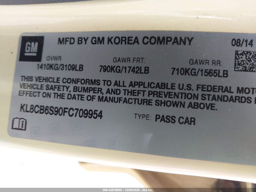 2015 CHEVROLET SPARK 2015 року Бензин, 1.2, Передній привід, vin - KL8CB6S90FC709954 з США