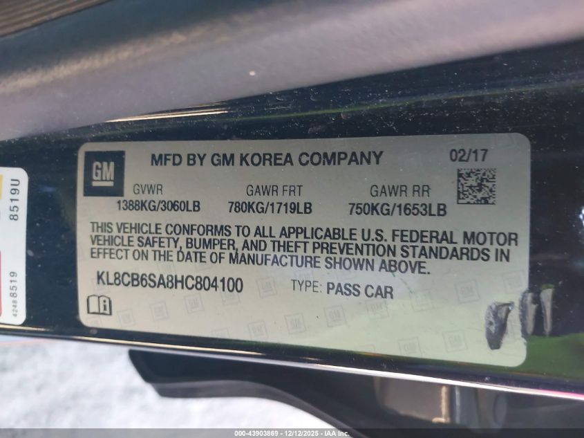 2017 CHEVROLET SPARK 2017 року Бензин, 1.4, Передній привід, vin - KL8CB6SA8HC804100 з США