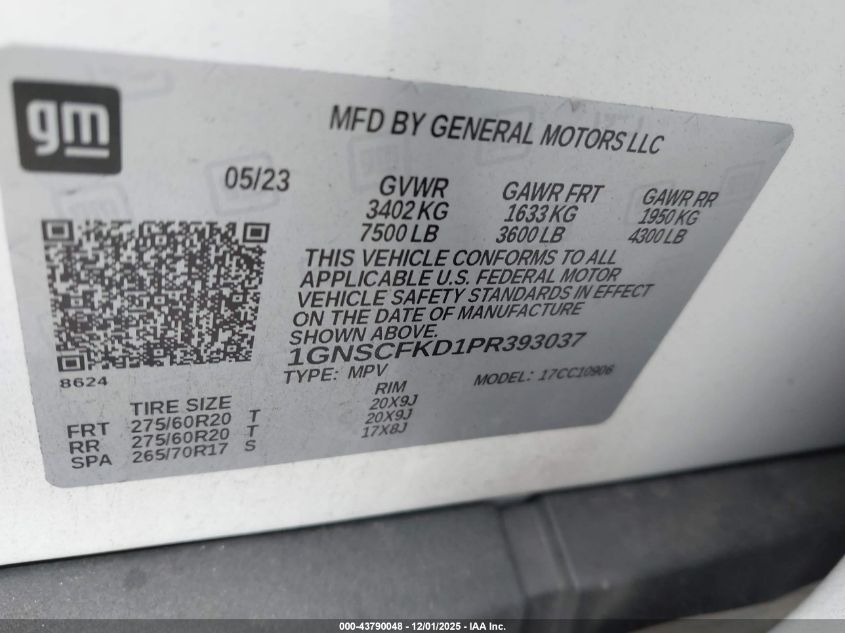 2023 CHEVROLET SUBURBAN 2023 року Бензин, 5.3, , vin - 1GNSCFKD1PR393037 з США