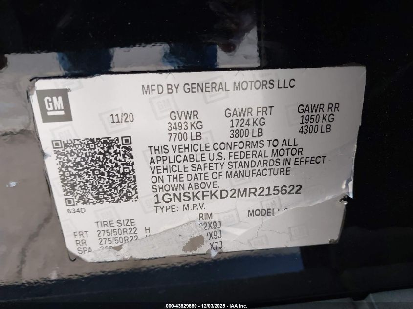 2021 CHEVROLET SUBURBAN 2021 року Бензин, 5.3, Повний привід, vin - 1GNSKFKD2MR215622 з США