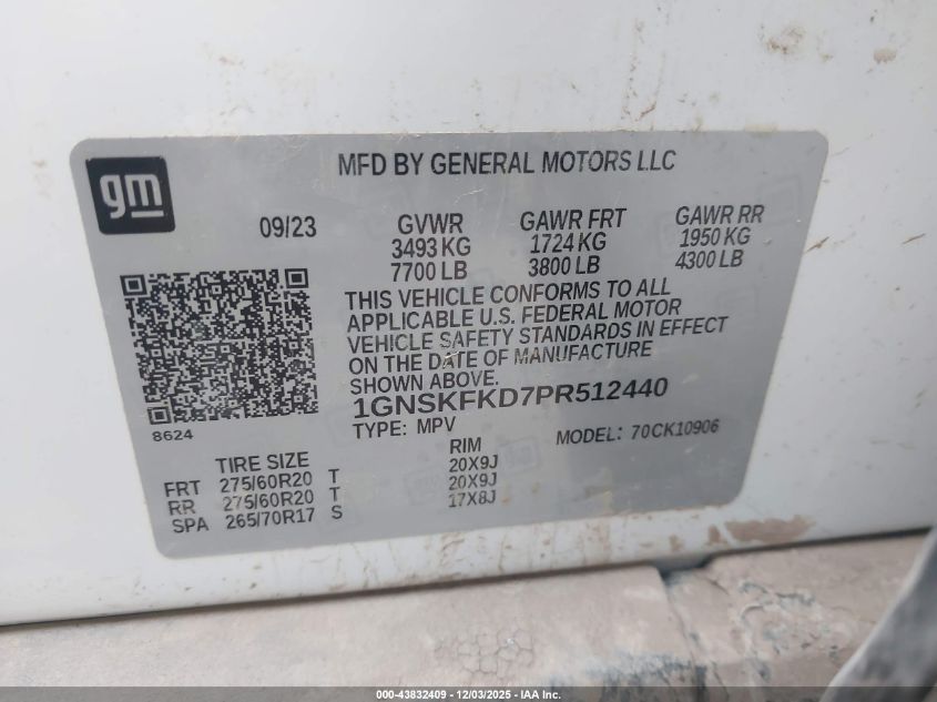 2023 CHEVROLET SUBURBAN 2023 року Бензин, 5.3, Повний привід, vin - 1GNSKFKD7PR512440 з США