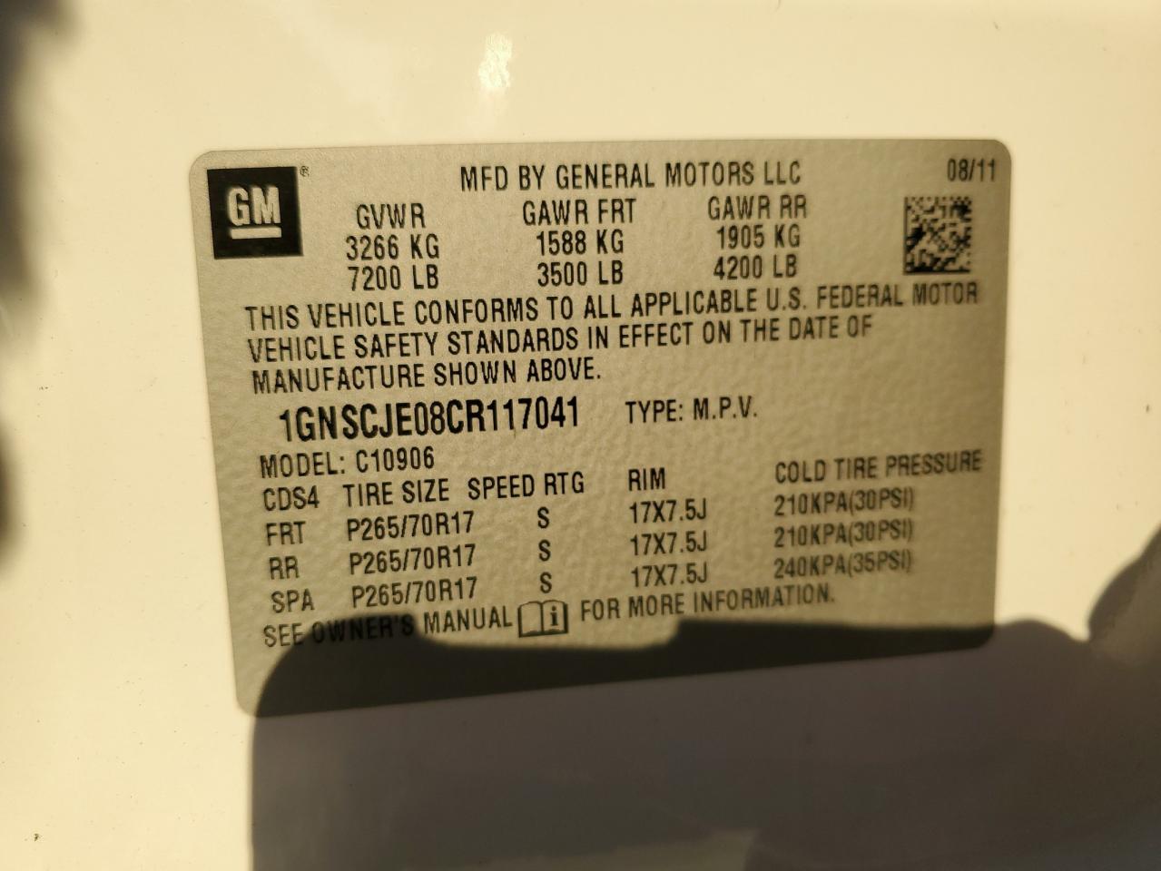 2012 CHEVROLET SUBURBAN 2012 року Бензин, 5.3, Задній привід, vin - 1GNSCJE08CR117041 з США