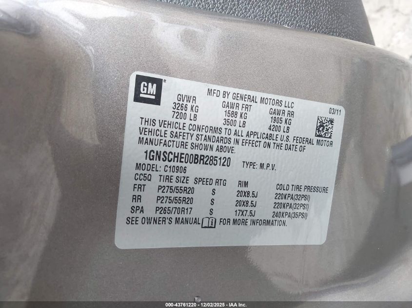 2011 CHEVROLET SUBURBAN 2011 року Бензин, 5.3, , vin - 1GNSCHE00BR285120 з США