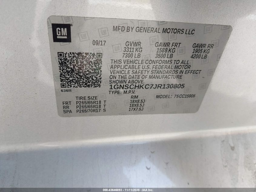2018 CHEVROLET SUBURBAN C1500 PREMIER