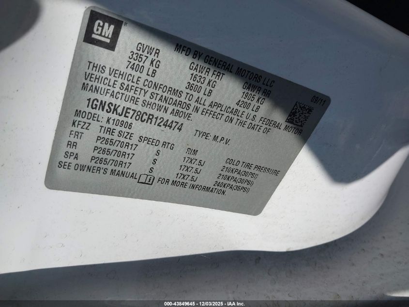 2012 CHEVROLET SUBURBAN K1500 LT