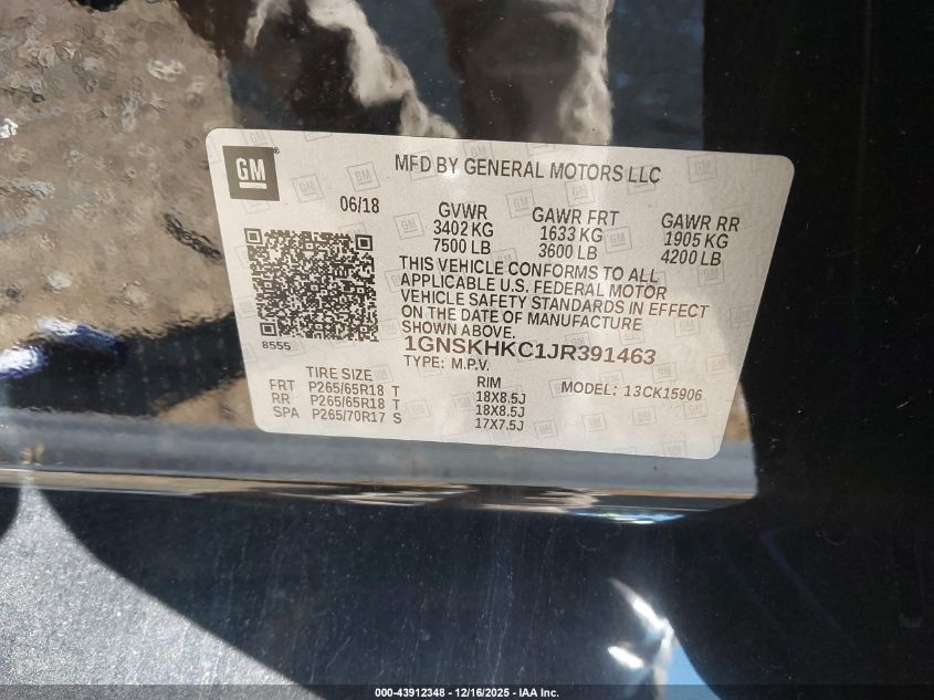 2018 CHEVROLET SUBURBAN 2018 року Бензин, 5.3, Повний привід, vin - 1GNSKHKC1JR391463 з США