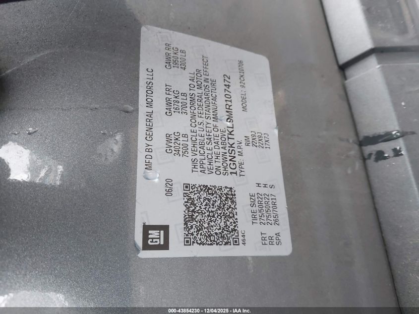 2021 CHEVROLET TAHOE 2021 року Бензин, 6.2, Повний привід, vin - 1GNSKTKL9MR107472 з США