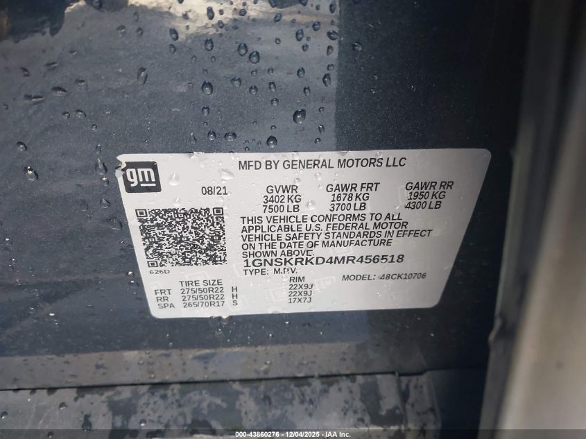 2021 CHEVROLET TAHOE 2021 року Бензин, 5.3, Повний привід, vin - 1GNSKRKD4MR456518 з США