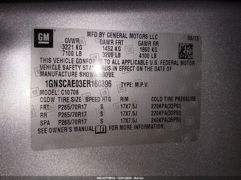 2014 CHEVROLET TAHOE 2014 року Бензин, 5.3, , vin - 1GNSCAE03ER160396 з США
