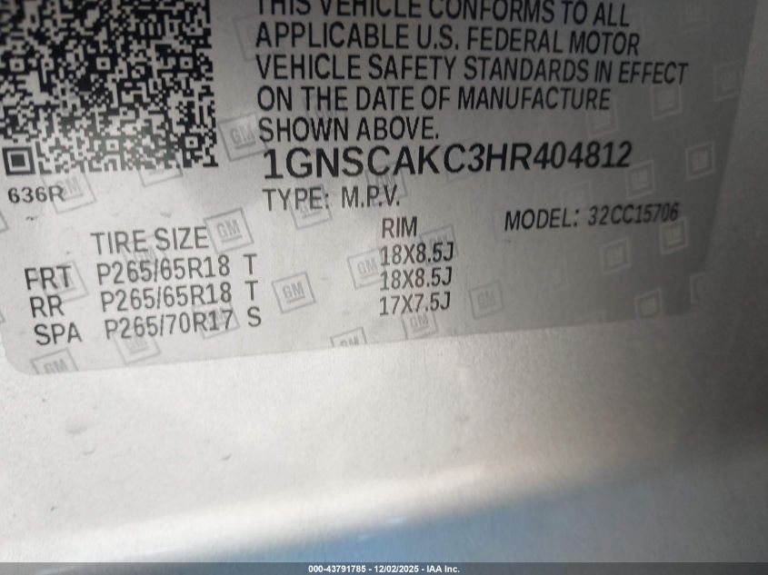 2017 CHEVROLET TAHOE 2017 року Бензин, 5.3, , vin - 1GNSCAKC3HR404812 з США