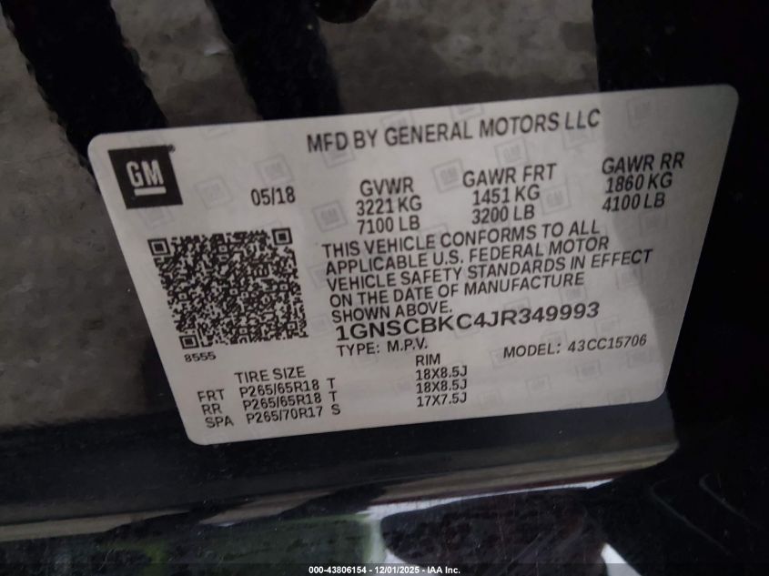 2018 CHEVROLET TAHOE 2018 року Бензин, 5.3, , vin - 1GNSCBKC4JR349993 з США