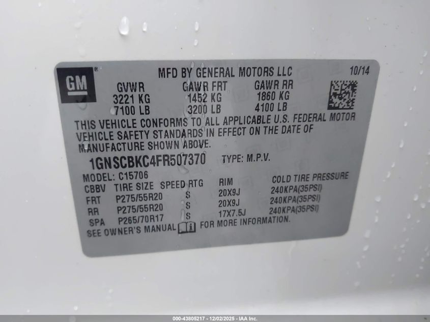 Колір БілийЦиліндри 8VIN 1GNSCBKC4FR507370Стан Заводиться та їде (перевірено)Ушкодження Задня ліва AutoRIA