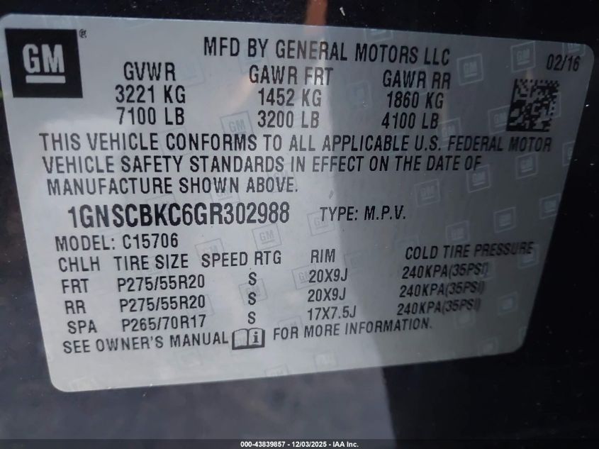 2016 CHEVROLET TAHOE 2016 року Бензин, 5.3, , vin - 1GNSCBKC6GR302988 з США