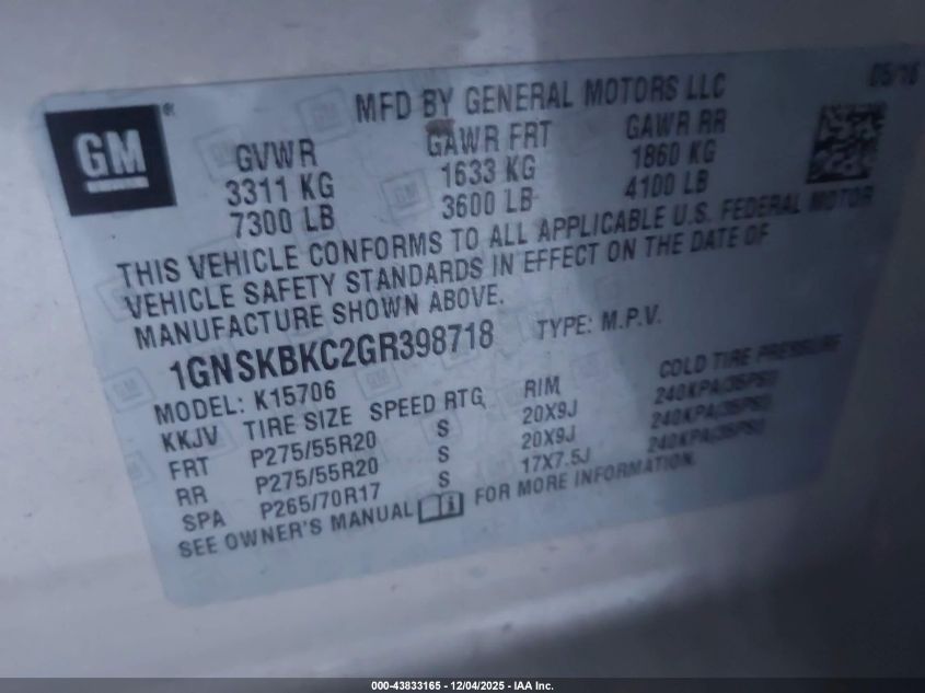 Колір ЗолотийЦиліндри 8Привід Повний привідVIN 1GNSKBKC2GR398718Стан Заводиться та їде (перевірено)Ушкодження Передня або задня AutoRIA