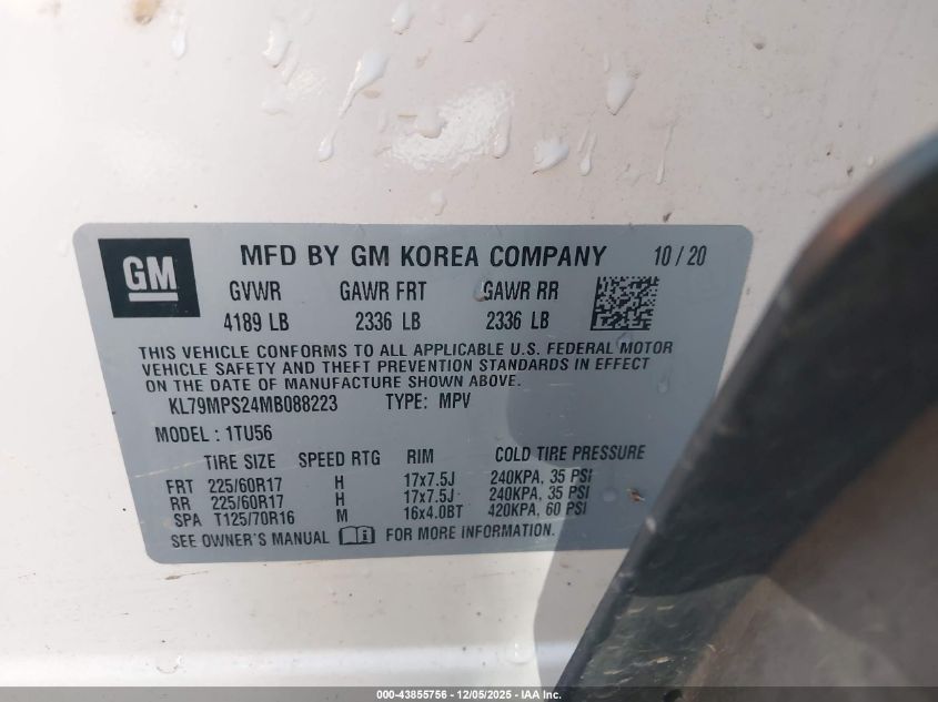 2021 CHEVROLET TRAILBLAZER 2021 року Бензин, 1.2, Передній привід, vin - KL79MPS24MB088223 з США