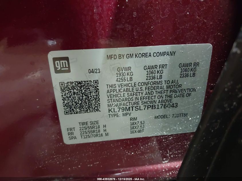 2023 CHEVROLET TRAILBLAZER 2023 року Бензин, 1.3, Передній привід, vin - KL79MTSL7PB176043 з США
