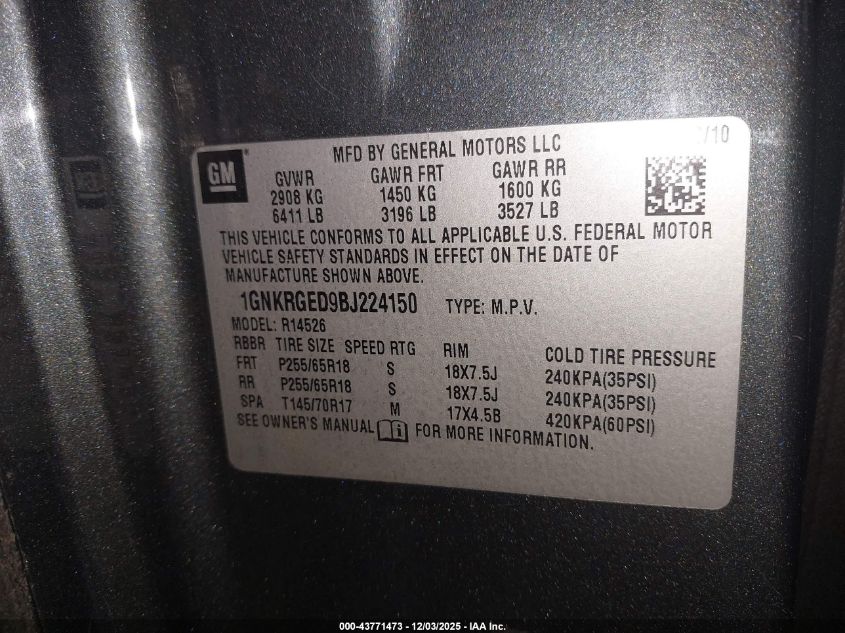 Колір СірийЦиліндри 6Привід Передній привідVIN 1GNKRGED9BJ224150Стан Заводиться та їде (перевірено)Ушкодження Передня ліва