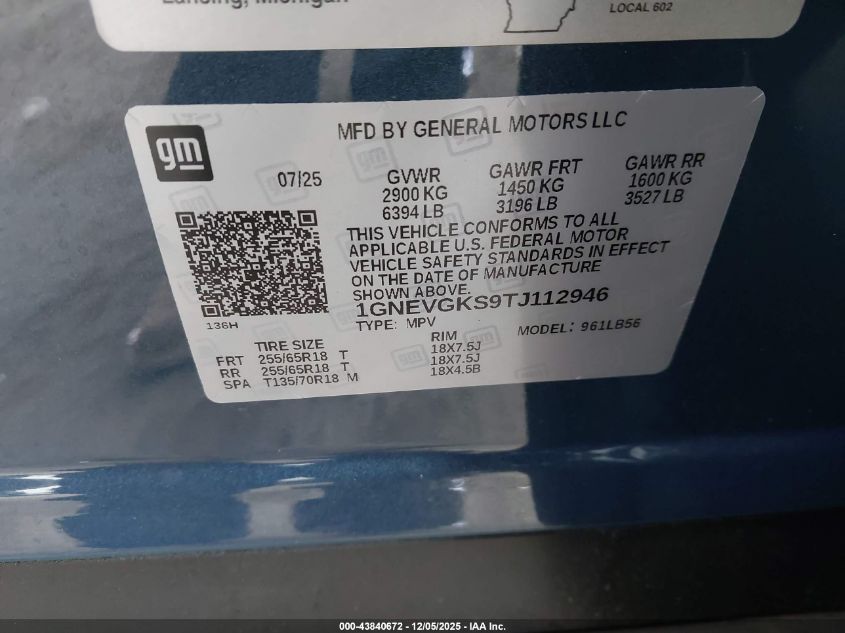 2026 CHEVROLET TRAVERSE 2026 року Бензин, 2.5, Повний привід, vin - 1GNEVGKS9TJ112946 з США