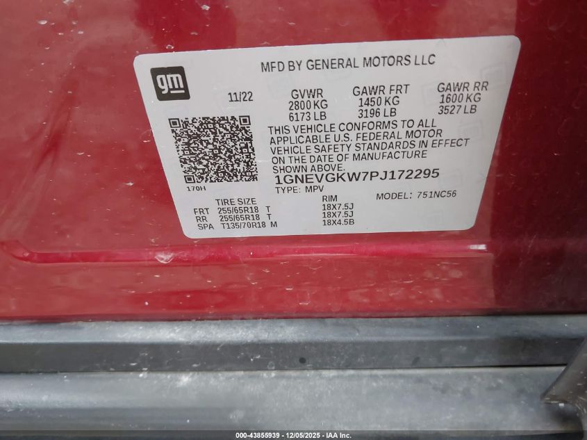 2023 CHEVROLET TRAVERSE 2023 року Бензин, 3.6, Повний привід, vin - 1GNEVGKW7PJ172295 з США