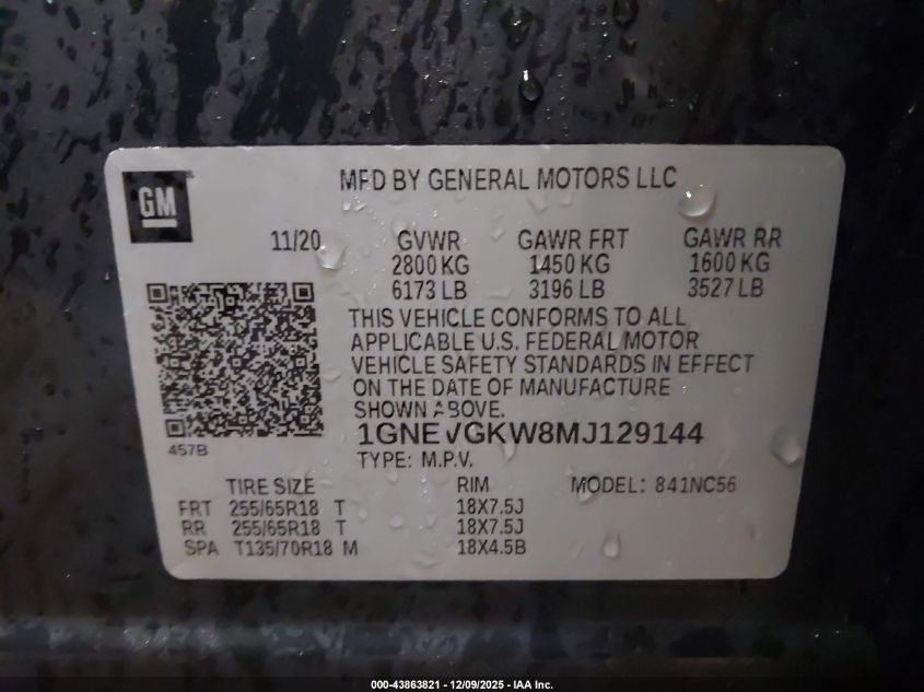2021 CHEVROLET TRAVERSE LT