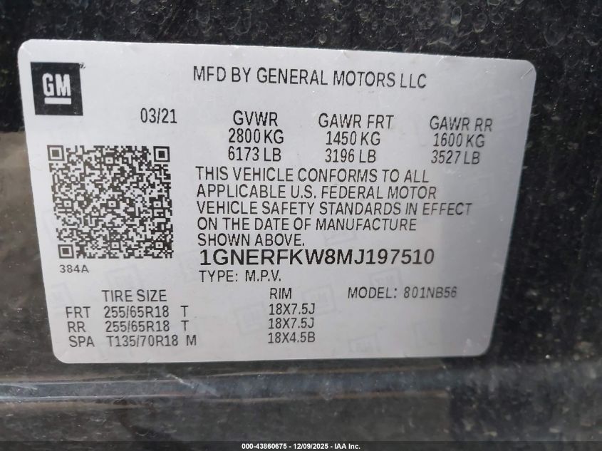 2021 CHEVROLET TRAVERSE 2021 року Бензин, 3.6, Передній привід, vin - 1GNERFKW8MJ197510 з США