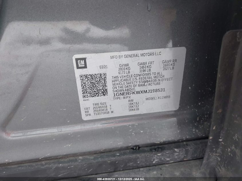 2021 CHEVROLET TRAVERSE 2021 року Бензин, 3.6, Передній привід, vin - 1GNERFKWXMJ198531 з США