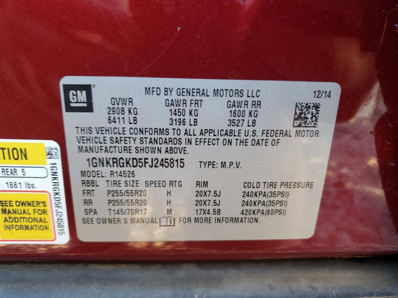 Колір ЧервонийЦиліндри 6VIN 1GNKRGKD5FJ245815Стан Заводиться та їде (перевірено)Ушкодження Передня або задня AutoRIA