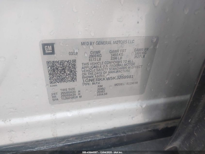 2019 CHEVROLET TRAVERSE 2019 року Бензин, 3.6, Передній привід, vin - 1GNERKKW5KJ258981 з США